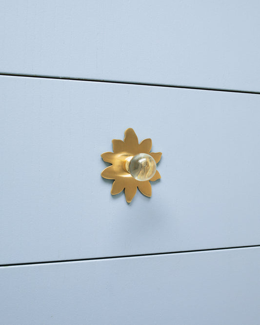 Coloured Knob, Pale Blue, Brass