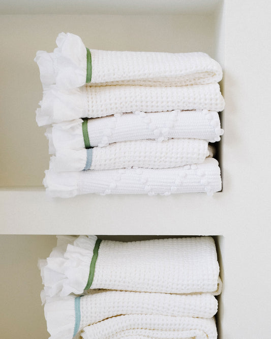 Waffle Cotton Hand Towels, Set of 2, Sage Green