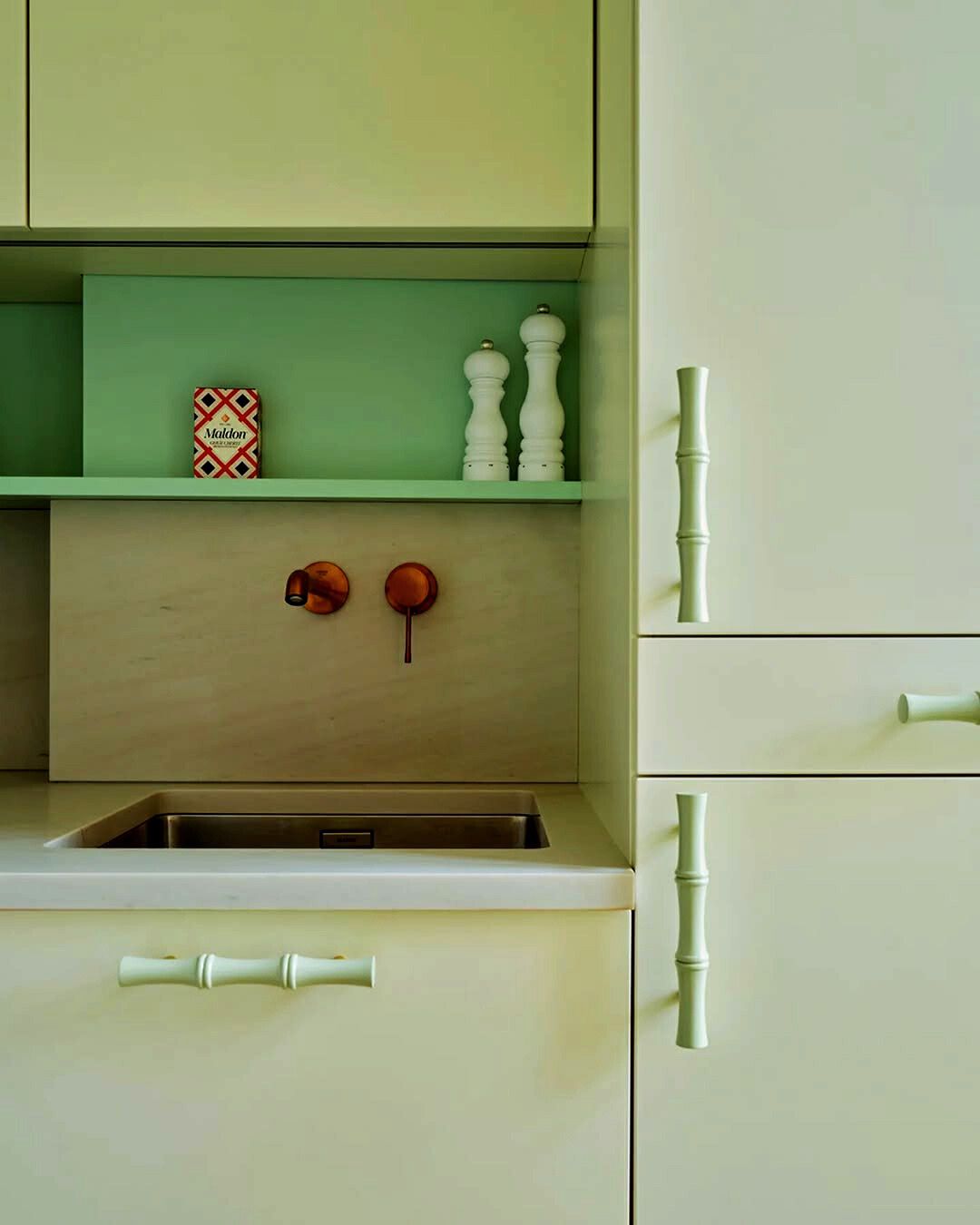 Hardware is always a great way of layering in personality to a space; as one of the most used aspects of a kitchen it's so worth investing in. Here, our Bamboo Handles match the cabinetry perfectly while adding a playful feel to the kitchen.